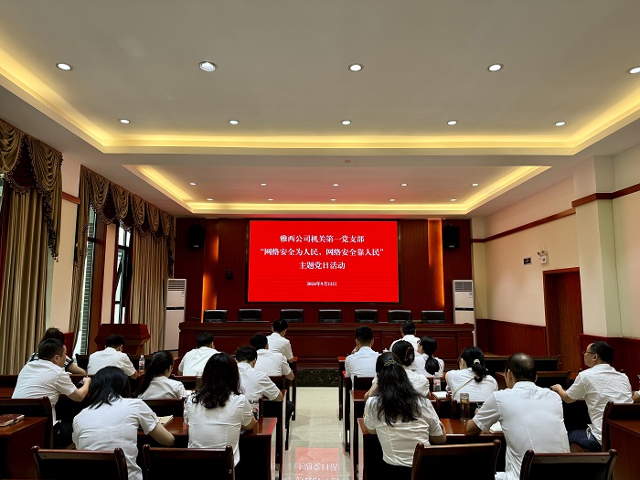 2024年是习近平总书记提出网络强国战略目标10周年,是习近平总书记提出总体国家安全观10周年,也是习近平总书记作出网络安全工作“四个坚持”重要指示5周年。为深入贯彻落实习近平总书记关于网络强国的重要思想,推动党员干部提升网络安全意识,共筑网络安全防线,9月12日雅西公司机关第一党支部组织开展“网络安全为人民,网络安全靠人民”主题党日活动。