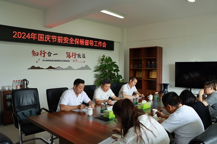 为贯彻落实四川高速公安二分局2024年第三季度“警路”暨“国庆”假期交通安全管理工作联席会议精神,督导绵遂高速节前安全、环保各项工作落实,9月26日,成德南公司党委委员、董事、总经理杨勇,党委委员、副总经理邝习东赴绵阳管理处主持召开“国庆”节前安全保畅工作督导会。公司安全环保部、工程养护部,绵阳管理处副处长及各业务科室负责人参加会议。