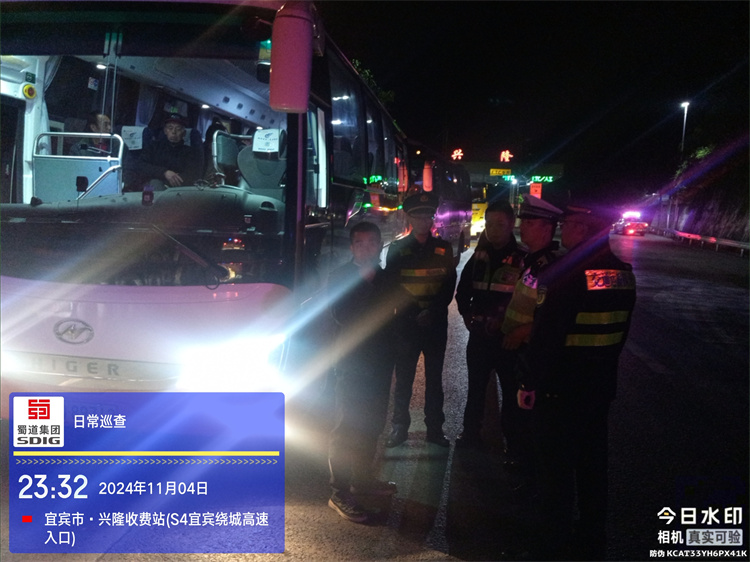 11月4日22时12分左右,川南公司宜宾管护大队值班分队接监控中心通知,车牌号为鄂QLU***的客运大巴在金沙江大桥路段发生机械故障,无法继续行驶,车上满载乘客,存在较大安全隐患。管护队员闻令即动,第一时间到达现场,立即设置警示标志,指挥过往车辆。随后,在与先后到达的高速交警及交通执法部门进行短暂协商后,向外勤协作单位下达了清障救援及人员转运指令。