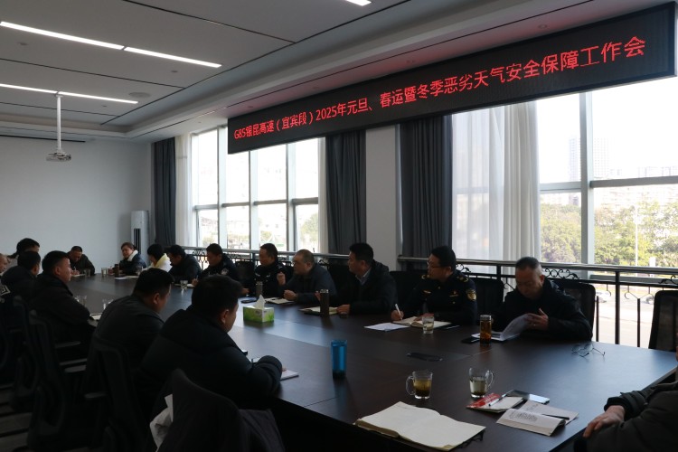 为切实保障元旦春运期间高速公路的安全畅通,有效防范重点时段安全风险,12月30日,川南公司宜宾管理处组织召开2025年度元旦春运暨冬季恶劣天气安全保障工作会。会议由副处长万代国主持,副处长卢渊,安全环保科、养护科、管护大队、服务管理站,高速公安、交通执法、蜀道养护集团、鑫缘救援相关负责人参加会议。