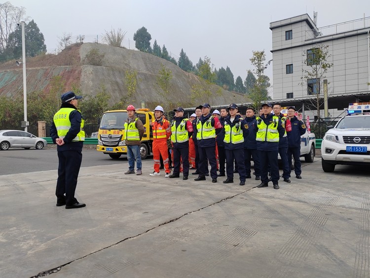 为积极响应四川省交通运输厅安全生产委员会印发的《全省公路水路交通运输领域今冬明春重大事故灾害隐患排查整治专项行动实施方案》,切实提升应对冰雪雨雾等恶劣天气下道路交通事故的能力,全力保障高速公路安全、顺畅运行,2025 年1月15日,资潼公司精心组织路产管护队、监控中心、成资渝项目养护单位以及清障救援单位,开展了一场极具针对性与实战性的应急处置培训及实操活动。
