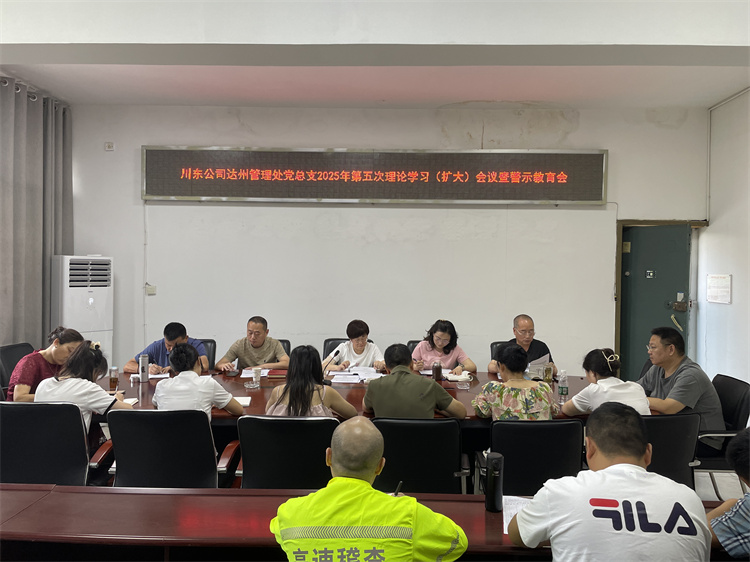 5月27日,川东公司达州管理处党总支组织召开2025年第五次理论学习(扩大)会议暨警示教育会。管理处党总支书记、总支委员、各支部书记、支部委员、团总支负责人、各站(队)长参加会议。