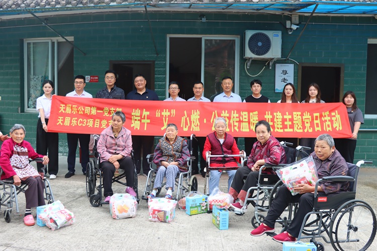 端午敬老传美德,粽香笑语润心田。为传承中华民族尊老敬老之传统,弘扬孝亲爱老之美德,值此端午佳节来临之际,天眉乐公司第一党支部联合天眉乐高速C3党支部于5月30日赴乐山市三康养老院,开展“粽香寄情·敬老传爱”主题慰问活动,以实际行动践行社会责任,为老人们送去节日的诚挚问候与暖心关怀。