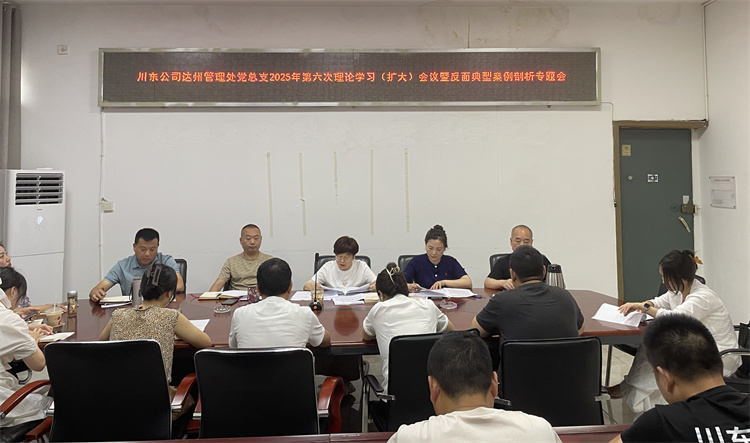 6月20日,川东公司达州管理处党总支组织召开2025年第六次理论学习(扩大)会议暨警示教育会。管理处党总支书记、总支委员、各支部书记、支部委员、团总支负责人、各站、队长参加会议。