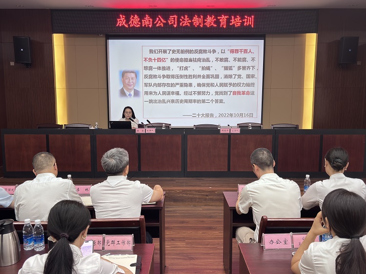 为深入贯彻中央八项规定精神学习教育,进一步提升公司纪检工作质效,6月19日,成德南公司纪委组织开展法制教育培训,公司领导班子成员、中层干部、党员及关键岗位人员共计87人参加培训。
