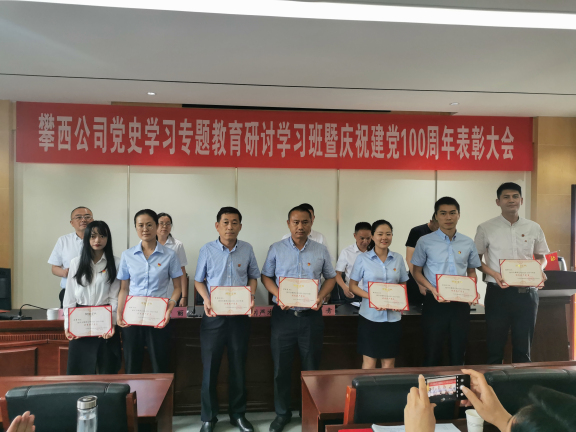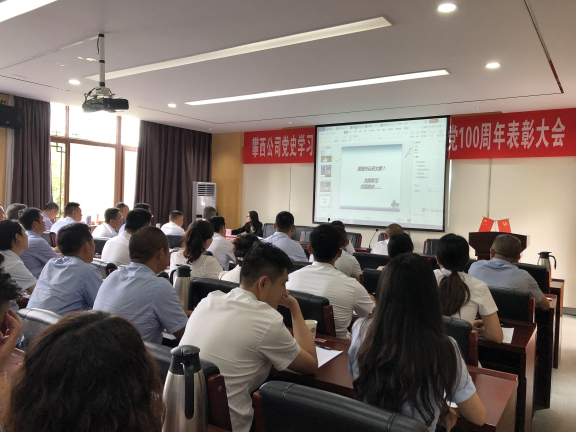 为热烈庆祝中国共产党建党100周年,树立典型,表彰先进,进一步深化和推动公司党史学习教育活动,6月29日,攀西公司在西昌市委党校举办党史学习专题教育研讨学习班暨庆祝建党100周年表彰大会。会议由公司党委委员、纪委书记陈青主持,公司领导班子成员、机关全体工作人员、各管理处处长、副处长、办公室主任、代表处处长、受表彰人员共计100余人参加。