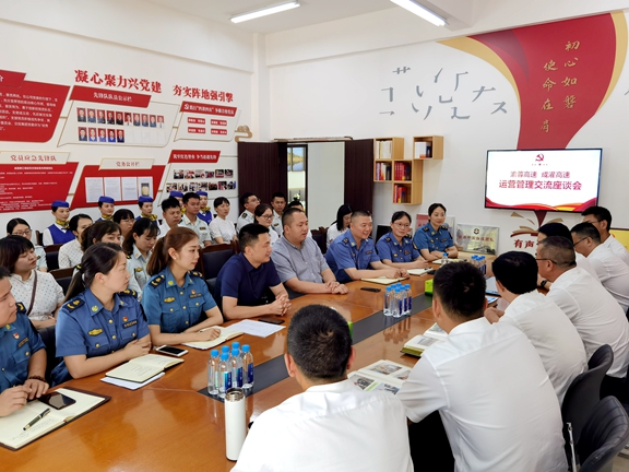6月23日,渝蓉公司副总经理刘昌明、王学权带领一线运营管理人员共计20余人前往成灌高速崇义收费站开展党建及收费业务交流学习。
