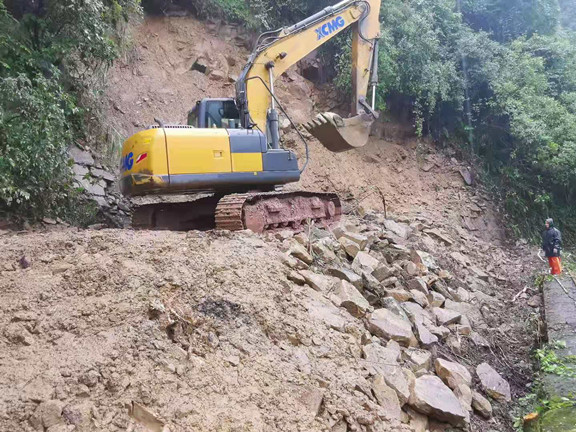 7月8日,受长时间强降雨影响致使龙井坝1号隧道洞口顶发生崩塌。为保证过往车辆安全,川东公司高度重视,周密部署,立即采取措施:一是组织施工单位对崩塌点进行交通管制;二是组织施工队伍对崩塌产生的落石、树木进行清理,以防落物二次危害;三是利用吊装小型挖掘机通过机械开挖、凿碎岩石等方式对平台进行进一步清理,形成可行的工作面后,对山体崩塌面用挂网喷混并结合锚杆锚固的方式进行处理。