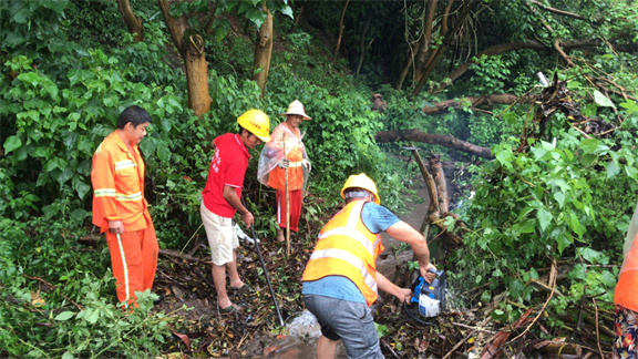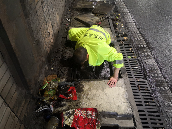 针对此次强降雨,川东公司按照“雨前排查、雨中巡查、雨后复查”工作原则,积极组织养护人员对道路边坡、隧道、排水系统等重点区域进行了排查,发现广安至邻水方向1690+700右侧排水沟、K1684+100中央分隔带排水沟、广安至邻水方向老山梁子隧道右线(广邻方向)左侧K1680+570电缆沟等3处堵塞造成车道积水,广安至邻水方向K1693处行道树倒伏威胁行车安全。针对排查情况,公司立即组织人员对堵塞点进行疏通,对倒伏的树木进行砍伐,第一时间消除了安全隐患,确保了行车安全。