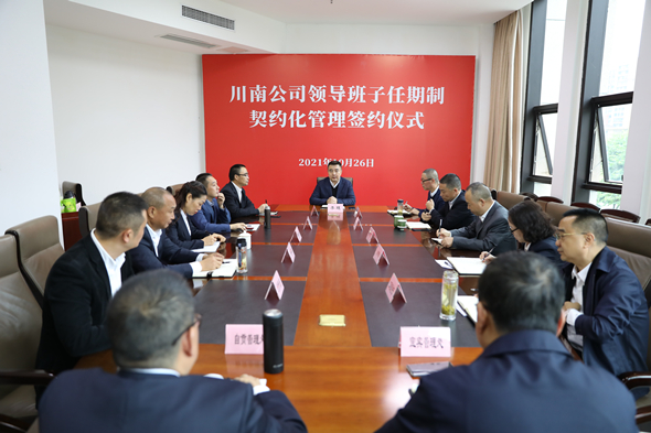 10月26日,川南公司举行领导班子成员任期制和契约化管理签约仪式。川南公司领导班子成员及各部门、各管理处负责人参加签约仪式。