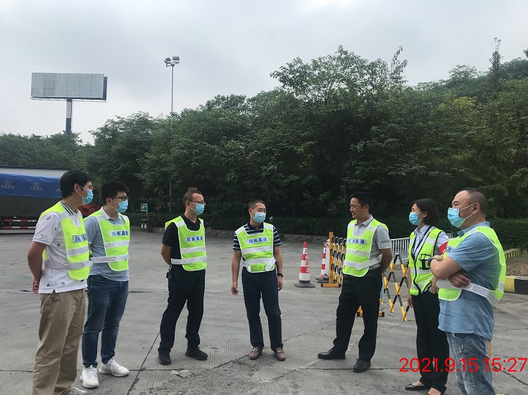 2021年9月15日,川南公司副总经理刘诗文一行到自贡北服务区开展安全环保大检查,安全环保部、收费管理部、经营开发部和自贡管理处相关人员陪同检查。
