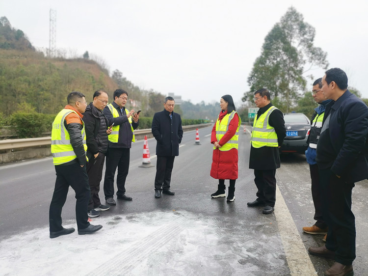 1月10日,川东公司党委书记、董事长郑永雄到G42沪蓉高速公路K1645+941m邻水至垫江方向调研月亮湾大桥安全隐患排查工作。公司党委委员、副总经理尹惠,安全环保部、邻水管理处相关负责人陪同调研。