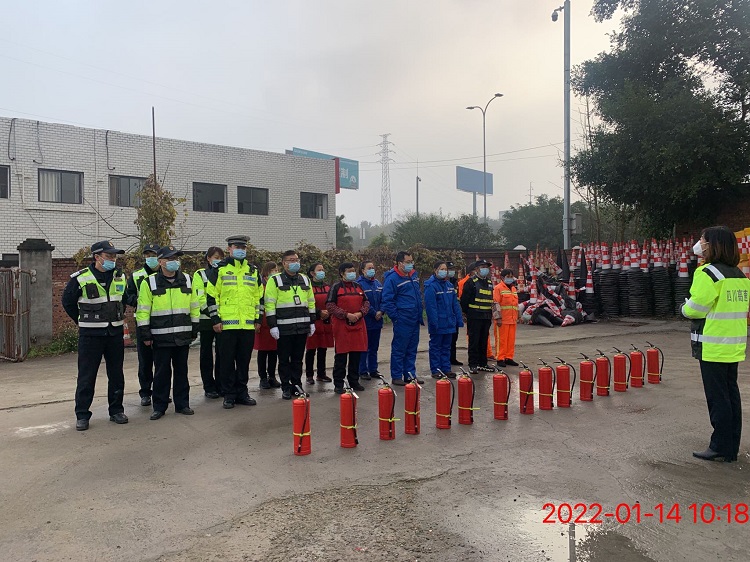 1月14日,川南公司自贡管理处服务区管理站联合高速交警三支队三大队、交通执法一支队十大队、自贡管护大队及自贡北服务区经营单位在自贡北服务区开展春运前消防应急演练。