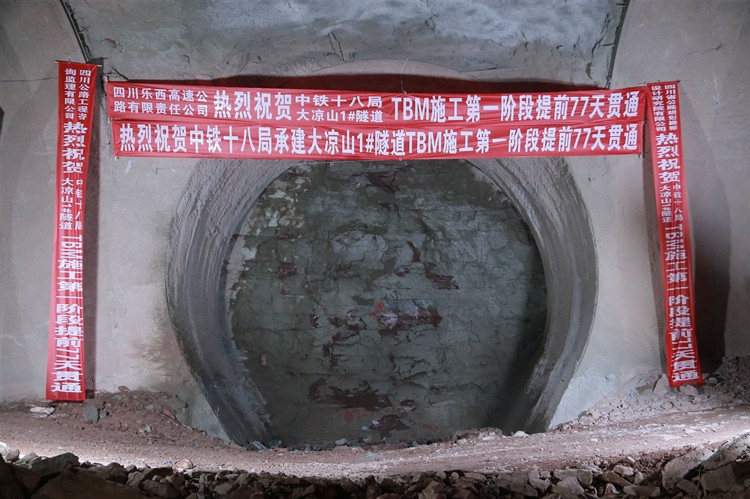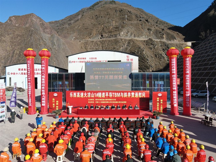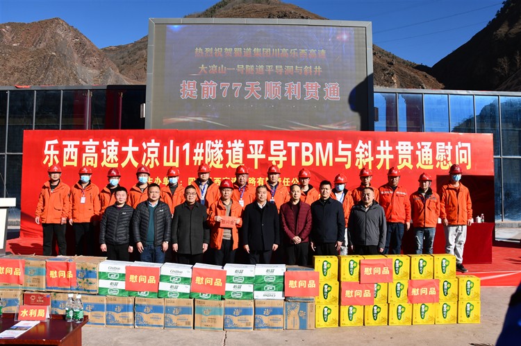 1月18日,随着“月城凉山号”TBM刀盘破岩而出,蜀道集团川高乐西高速关键控制性工程之一大凉山一号隧道平导洞与斜井顺利交汇贯通,并举行了贯通慰问活动,标志着大凉山一号隧道整体工程第一阶段施工任务顺利完成。
