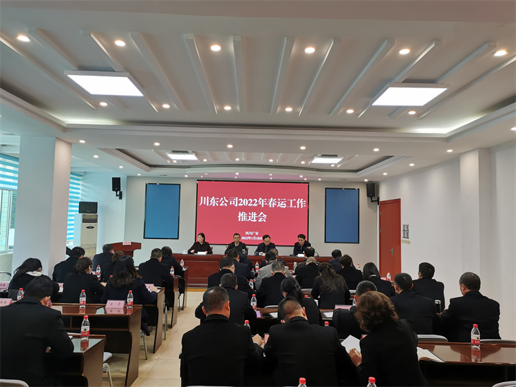 1月18日,川东公司召开2022年春运工作推进会,对保通保畅、疫情防控、安全稳定等重点工作进行安排部署。公司领导、全体中层干部参加会议。