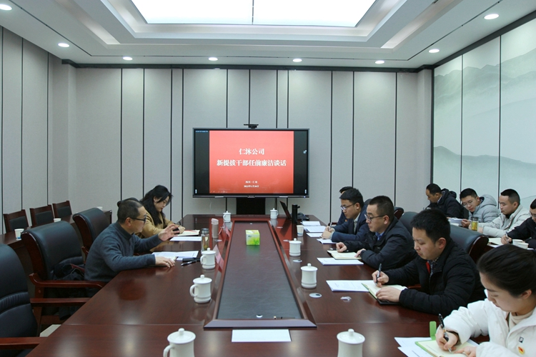 为进一步增强新提拔干部廉洁自律意识,筑牢拒腐防变的思想防线,1月26日,仁沐公司党委委员、纪委书记陈延昌对公司14位新提拔中层干部进行集体廉洁谈话,仁沐公司纪委副书记、纪检工作部部长魏来主持会议。