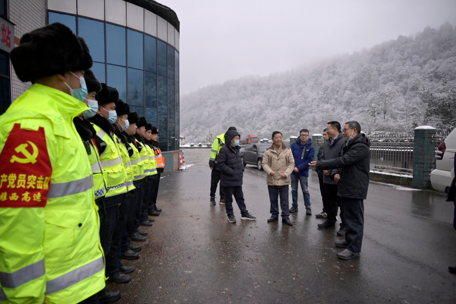 2月7日,川高公司党委副书记、董事、总经理王孝国率川高公司营运管理部、工程养护部、安全环保部相关人员赴雅西高速公路看望慰问坚守在除雪保通一线的员工。雅西公司党委书记、董事长于天才,党委委员、副总经理、工会主席刘春等陪同慰问。
