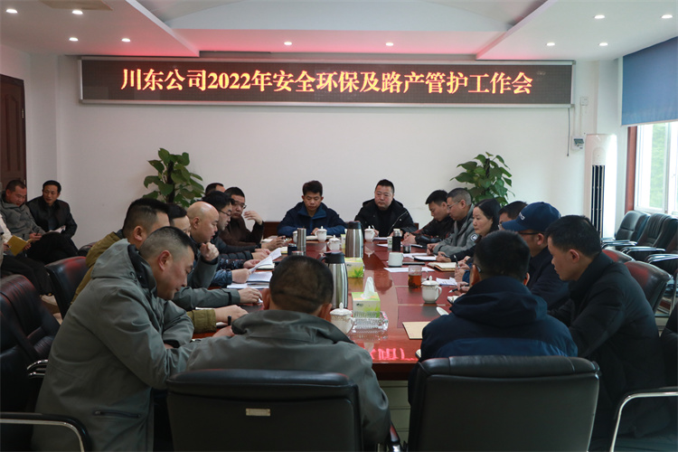 2月11日,川东公司召开安全环保及路产管护工作会,总结2021工作开展情况,旨在统一思想,理清思路,分析问题,进一步提高安全环保及路产管护水平。公司分管领导,各管理处分管副处长、安全环保科正副科长、路巡队长及清排障班负责人,安全环保部全体人员参加会议。