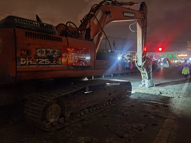 3月21日晚8点,第二阶段白家互通立交路面病害维修处治工程正式实行交通管制并封道施工。本次病害处治工程(破除)桥面混凝土67.73㎡、钢纤维混凝土1573.37m³、ATB改性沥青基层4475.6㎡,(摊铺)AC-20下面层、中面层 4475.6㎡、5cm改性SMA-13C上面层4706.7㎡,现场累计投入管理人员及民工155人,大型机械设备49台、运输车辆36台。为了高效完成病害处治,降低封道施工对交通影响,特使用新的施工工艺,在沥青混合料中加入了5%的高模量改性剂,能有效提升沥青混合料的高温稳固性和水稳固性,保证了路面的稳定性能和耐久性。为加速推动施工进度,24小时不停息施工,公司领导靠前指挥,及时解决现场问题,协调工作,抢抓施工进度。