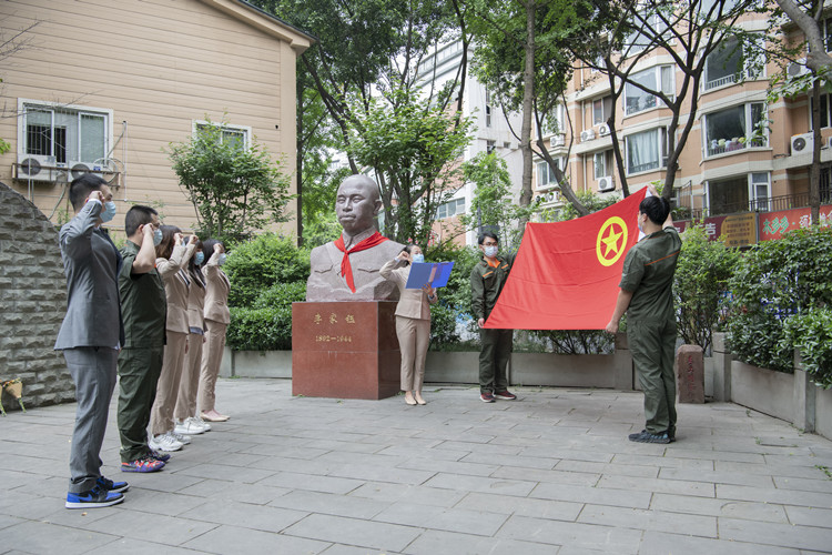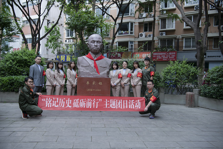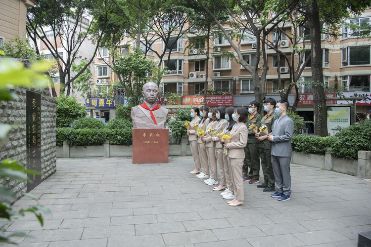 在著名川军将领、抗日烈士李家钰烈士陵园,高路物业公司团员青年怀着崇敬的心情,清扫了李家钰烈士陵园园区的落叶、擦拭了烈士塑像和墓志铭。活动中,首先由团支部书记介绍了李家钰烈士的人物生平,结合党的青年运动史开展了一次专题学习,并以《新时代新青年》为题讲述了一节生动的团课。随后,团员青年代表向烈士默哀、鞠躬、敬献鲜花,缅怀革命先烈的英勇事迹。最后,在李家钰烈士雕像面前,团员青年面向团旗,举起右拳,重温了入团誓词。
