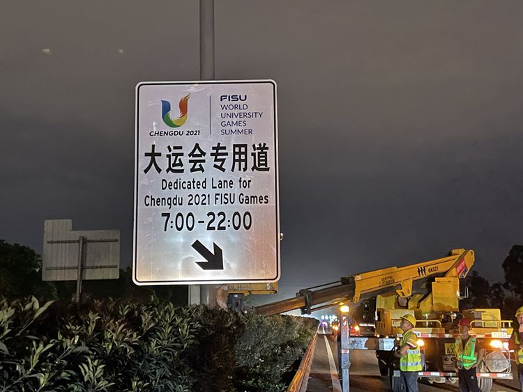 为保障成都“大运会”赛事相关车辆通行效率,成都市交管局在成都绕城高速全线设置大运会专用通道,专用车道设置在绕城高速主一车道,专用道采取6米黄线、6米白线、间隔9米的方式施划,在车道上印有大运会会徽,在道路中央隔离带设有专用提示牌。为保障本次任务顺利完成,由川西公司负责本次施划大运会专用车道交通组织保障任务,采取道路半幅封闭,分段实施。为确保大运会专用通道按期完成,川西公司将全力配合市交管局,做好交通组织保障工作,保证施划过程的作业安全,整个施划工程于4月24日晚开工,计划5月19日之前全部完成。