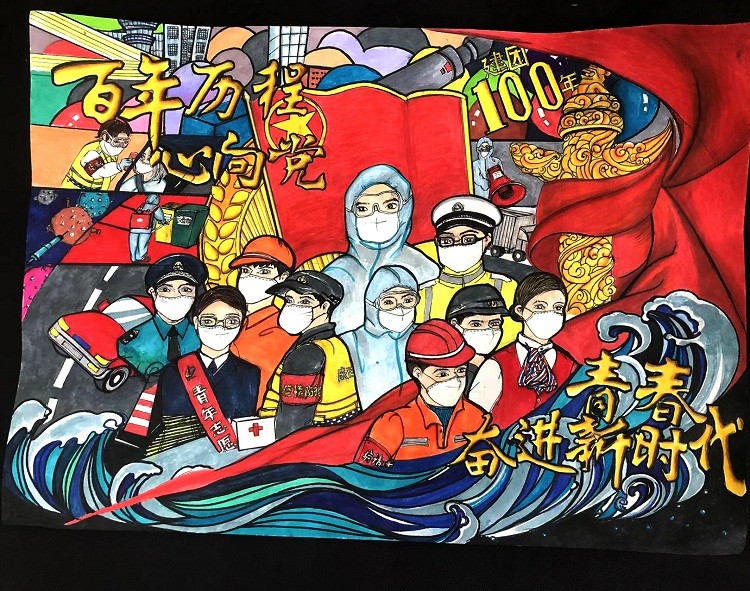 成德南公司绘画作品《抗击疫情 青年先行》荣获省企业团工委“百年历程心向党 青春奋进新时代”主题征文暨文艺创作大赛绘画类一等奖