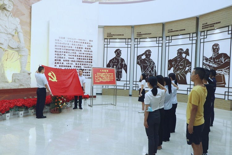 在讲解员的引导下,大家通过观看珍贵的革命历史图片、文物资料深入了解了张思德同志忠于党、忠于革命、全心全意为人民服务的短暂而又伟大的一生,深刻理解了“为人民服务”五个字的真谛。随后,在张思德同志纪念雕像前,全体党员同志重温入党誓词,面对鲜红的党旗,字字铿锵,坚定“不忘初心、牢记使命”的政治信念,矢志不渝地恪守承诺,永葆共产党员的初心。