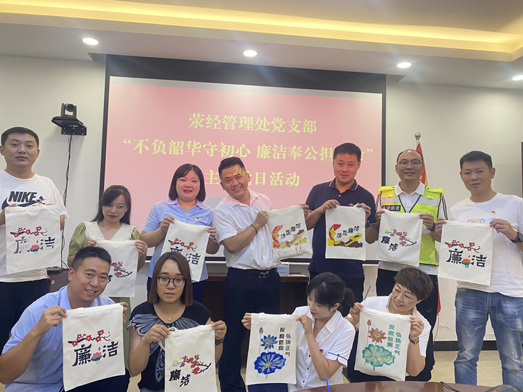 8月25日,雅西公司荥经管理处党支部召开“不负韶华守初心 廉洁奉公担使命”主题党日活动。活动内容一是学习廉洁文化相关理论知识,安排落实“不负韶华守初心 廉洁奉公担使命”主题活动;二是集中观看《年轻有为莫妄为》警示教育片,通过案例深入解剖年轻干部违纪违法案例所产生的根源和影响,进一步增强年轻干部的纪律意识和规矩意识,筑牢拒腐防变道德防线;三是在定制帆布袋上描绘廉洁文化内容,既让党员同志体验到了彩绘的乐趣,也提高了全体党员崇廉敬德的思想品质,营造了党支部良好的崇廉氛围。