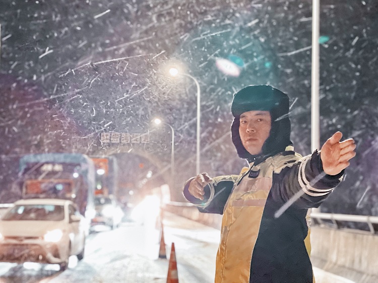 为防止道路因低温造成的积雪结冰,达陕公司路安队员们不畏严寒积极响应,驾驶大型除雪车及两台便携式撒布机设备上路,对降雪路段持续撒布融雪剂,坚持边降雪、边清雪、边除冰的原则,抢时间,抢进度,连续昼夜奋战,全力开展除雪防滑工作。14日晚22时,根据雪情研判,达陕公司万源管理处与陕西高潭管理所协同在四川境内K1267处和陕西境内K1097处,共约相距170余公里进行远端分流,极大缓解了辖区通行压力,并于15日凌晨两点左右,将辖区内滞留车辆放行完毕。