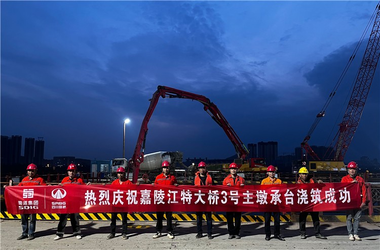 南充至成都高速公路扩容工程LJ4-2标嘉陵江特大桥首个主墩承台浇筑成功