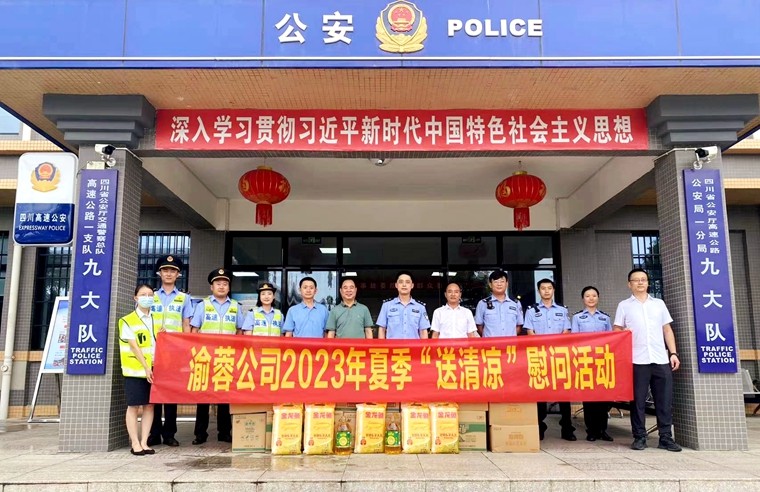 8月8日,川西公司党委书记、董事长刘小刚,党委副书记、总经理何雁带队赴渝蓉高速慰问坚守岗位的四川省公安厅交通警察总队高速公路一支队九大队、四川省交通运输综合行政执法总队第一支队六大队人员,渝蓉公司副总经理王学权及相关部门负责人陪同。