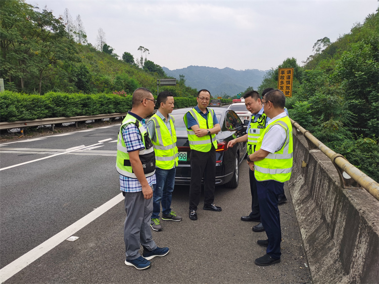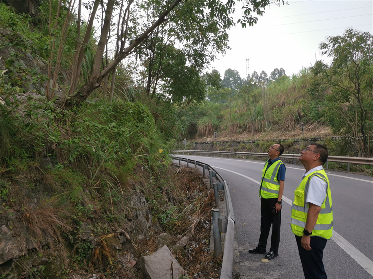 施工安全检查后,王川一行到达渝路达州至重庆方向K1492+600M处调研了“7.24”交通事故路段防范措施,并与高速交警达成增设交通安全设施意见。随后,现场查看了华蓥山互通匝道边坡情况,并确定了治理方案。