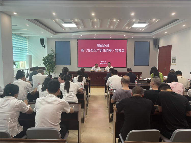 为进一步增强员工安全意识,提升安全管理水平,6月3日-7日,川东公司相继对运行调度中心、资产经营部(综合开发部)、综合办公室(群团办公室)、纪检办公室、党务工作部(人力资源部)、财务管理部及各管理处召开了新《安全生产责任清单》宣贯会,全面完成了宣贯工作,公司安全总监黄长才参会并做了重要讲话。