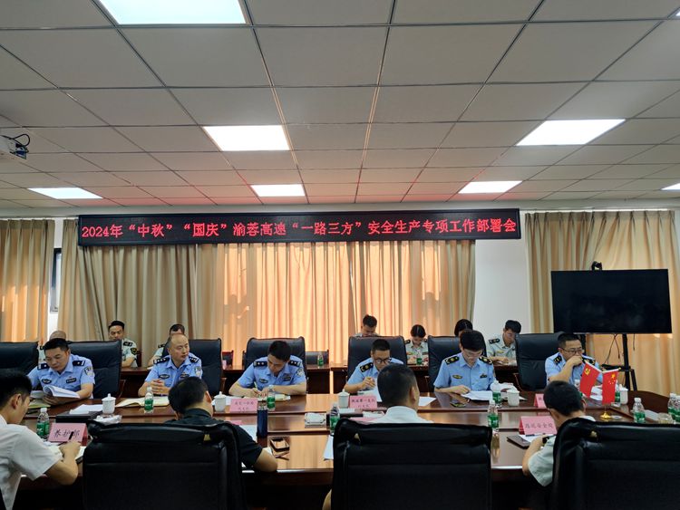 为确保节假日期间渝蓉高速安全、畅通,9月10日,渝蓉公司组织召开“中秋”“国庆”渝蓉高速“一路三方”安全生产专项工作部署会,渝蓉公司副总经理张鹏、辖内高速交警、高速交通执法、服务区加油站、施工养护、清障救援等单位负责人出席会议。