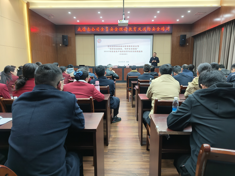 为深入贯彻落实《中华人民共和国安全生产法》及四川省安全生产工作部署,进一步强化全员安全责任意识,提升应急处置能力,3月28日,成德南公司组织开展2025年全员安全理论教育及消防安全培训。公司领导班子成员、各部门及管理处负责人、职工代表、安全环保部全体人员、路安科及路产管护大队负责人、全体兼职安全员等共计50余人参训。