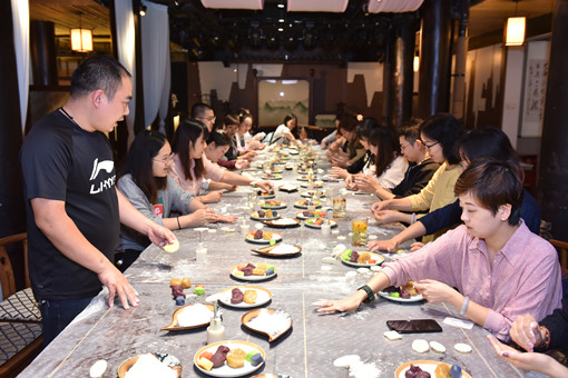 活动首先邀请了国学老师汪相潭为大家讲述朝代更替下华夏文化、礼仪、汉服发展变迁。随后,职工们在宫廷糕点师的指导下制作手工月饼,大家一起揉面和馅,体验手工的乐趣,现场气氛十分活跃。通过浸润式体验,职工们近距离触摸传统文化,真切地感受到了古代礼仪中立身行道的智慧,激发了广大职工弘扬中华优秀传统文化的精神和信念。