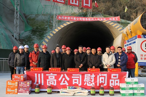 2019年1月15日,川高公司副总经理郜进良一行在绵九公司董事长曾忠的陪同下,深入九绵高速施工现场亲切慰问九绵高速开元棋牌者。