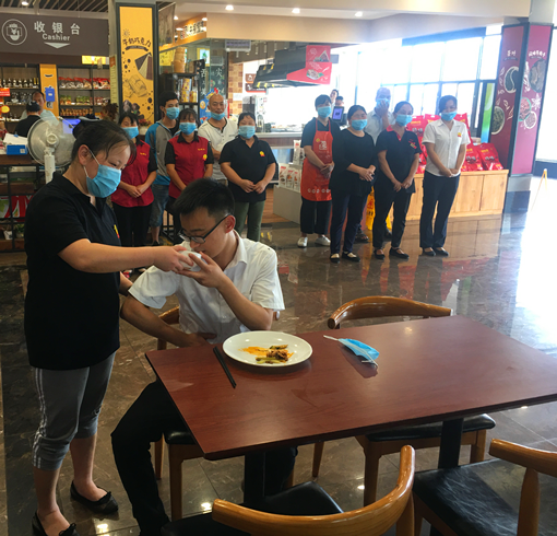 此次演练地点设在服务(停车)区餐厅,整个演练活动以现场模拟方式进行,演练过程中模拟了司乘人员在餐厅就餐后出现呕吐、腹痛、腹泻等等不适症状,疑似食物中毒。面对突发情况,餐厅服务人员第一时间向服务(停车)区主任报告,接到报告后,工作人员立即赶到现场并启动相关应急预案,拨打120急救电话,对出现症状的司乘人员进行了简单的处理,为防止事态扩大,保存好呕吐物等,对餐厅的食品留样和餐具进行封存,积极配合专业人员对中毒事件进行调查。事后,工作人员安抚中毒人员,稳定现场司乘人员的情绪,保证服务(停车)区正常工作秩序。整个演练过程有条不紊,达到了演练目的。