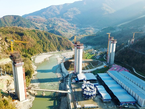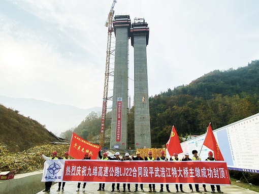 九绵高速公路LJ22合同段项目平武涪江特大桥主墩成功封顶