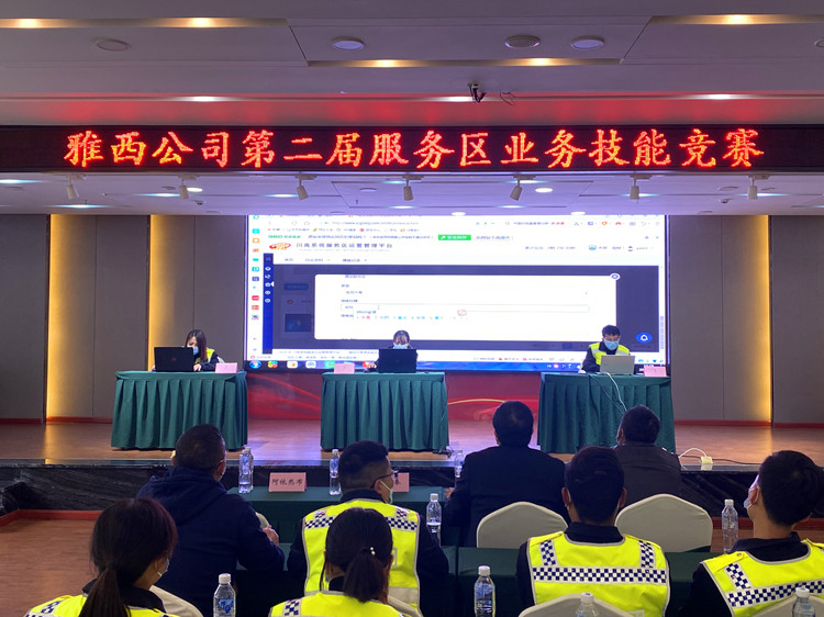 为大力推动服务区高质量发展,改进和提升服务区现场管理人员管理服务水平和综合素质,进一步促进服务区管理经验交流和岗位练兵,11月4日,雅西公司第二届服务区业务技能竞赛在雅西高速公路荥经服务区临时停车区举行。雅西公司党委书记、董事长于天才,党委委员、副总经理、工会主席刘春,党委委员、纪委书记阿依热布,公司人力资源部、收费部、各管理处、服务区相关负责人和工作人员以及参赛选手参加比赛。