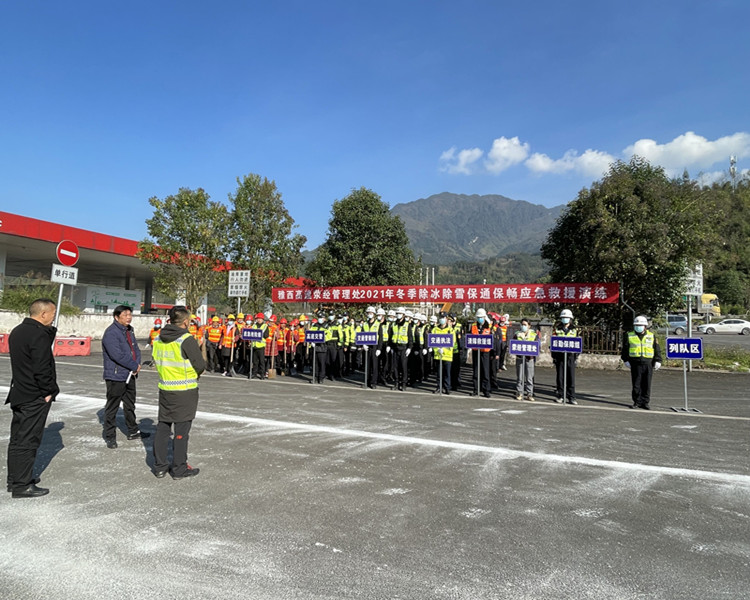 12月1日下午,荥经管理处联合“一路四方”开展“2021年冬季防冰除雪应急演练”,雅西公司党委委员、副总经理罗俊现场指导演练。
